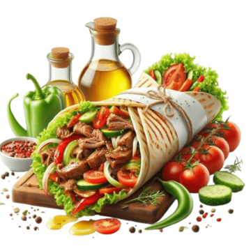 6oz beef chapli kebab with Canadian cheddar cheese, crispy onion rings, zesty salsa, roasted peppers, fresh tomatoes, crisp lettuce, pickles, and smoky chipotle aioli.