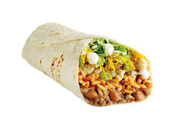 Ground beef, chicken, refried beans, cheese, Mexican rice, sautéed veggies, sour cream, and burrito sauce.